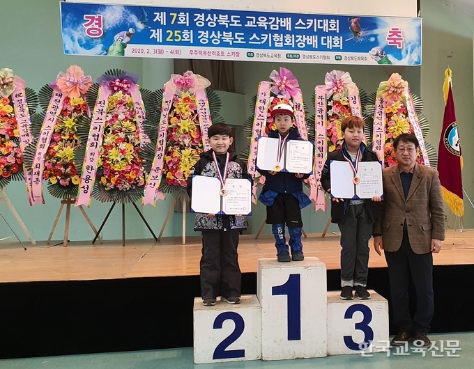 구미인덕초등학교(교장 한미경) 4학년 조민규 학생(감독 김현아 구미옥계초등학교 교사)은 지난 2월 3일(월) 무주덕유산리조트 스키장에서 개최된 제7회 경상북도교육감배 및 제25회 경상북도협회장배 스키대회에서 남자 초등부 3∼4학년부 대회전 경기(알파인)에서 종합 2위에 입상하였다.