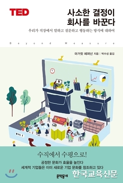 이 책은 TED 강연 내용을 바탕으로 했다. 저자는 이 책에서 공정한 조직문화로 성공적인 회사를 이끈 사례들을 소개하고 있다. 학교와 기업은 분명히 다른 조직이지만 사람이 이끌고 사람을 키우는 조직이라는 점에서는 기업의 가치와 크게 다르지 않아 보인다. 저자가 내놓은 조직을 살리는 5가지 처방전을 소개한다.