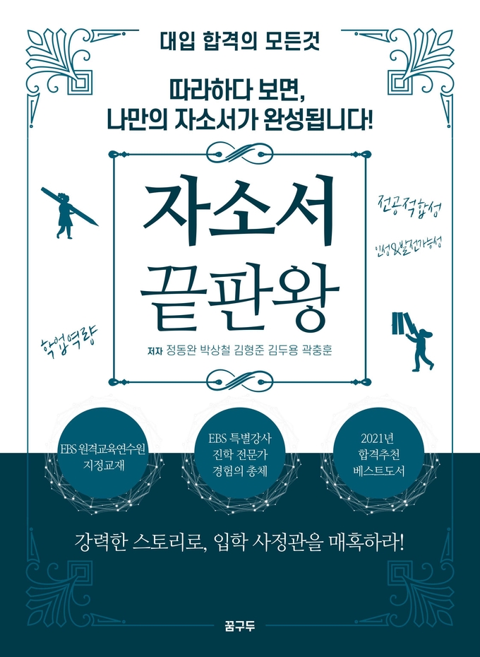 ‘자소서 끝판왕’은 학종에 중요한 핵심 키워드를 통해 학생부를 자소서로 연결하는 전략으로 나만의 자소서를 완성할 수 있는 방법을 안내한다. 자소서가 완성되는 과정을 단계별로 제시해 이해도를 높였고 대화체로 구성해 친근감도 살렸다. 특히 ‘자기소개서 트리’라는 개념을 도입해 책에서 제시한 단계에 맞춰 작성하기만 하면 누구나 쉽게 일정 수준 이상의 글을 쓸 수 있도록 했다. 이밖에도 학생부를 스스로 분석할 수 있는 틀과 자소서 체크리스트를 제공해 학생 스스로 방향성을 잡을 수 있도록 도왔다.