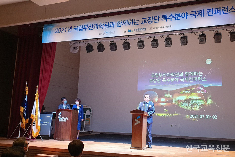 하윤수(전 부산교대 총장) 한국교총 회장이 1일 부산시 기장군 국립부산과학관에서 열린 한국중등교장협의회 연수에서 인사말을 하고 있다.