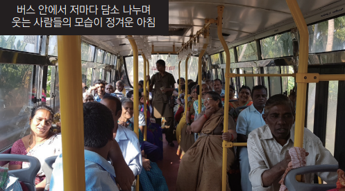 버스 스탠드(버스터미널을 인도에선 이렇게 부른다)에서 경비원에게 함피행 버스를 물었더니, 친절하게도 그 버스 앞까지 나를 데려다준다. 티켓팅을 해야 하는 거 아닌가 기웃거렸지만, 어디에도 표 파는 곳이 없다. 버스에 올랐더니, 세상에나 차장이 있어 일일이 손님에게 와서 돈을 받고 영수증을 주는 시스템이다. 골목을 하나 도는데 M형이 손을 들어 버스에 탄다. 버스 안에 탄 현지 주민들의 눈이 두 사람에게로 분산되니 눈빛의 무게가 반으로 줄어드는 것보다 더 반가운 건, 사실 잔돈이 없었던 이유였다. 2000루피는 고액권이라(우리 돈 3만 5000원 정도) 잔돈 교환 때문에 사용이 어렵다. 좀 전 거리표 음식을 먹을 때 몹시 당황했다. 지갑과 주머니를 다 열어보니 10루피 한 장과 동전 두 개가 있을 뿐 20루피를 채울 수 없었으니 말이다. 그 옆 가게에 가서 물 한 병 사려고 2000루피를 내밀었더니 안 된단다. 마찬가지, 거리표 음식 주인도 내가 2000루피 지폐와 남은 잔돈을 모두 보였더니 잔돈만 가져가며 오케이라 말했다. 20루피짜리 아침을 깎아서 15루피 정도 낸 셈이다. 그러니, 16루피인 버스비야 또 말해 무엇하랴.