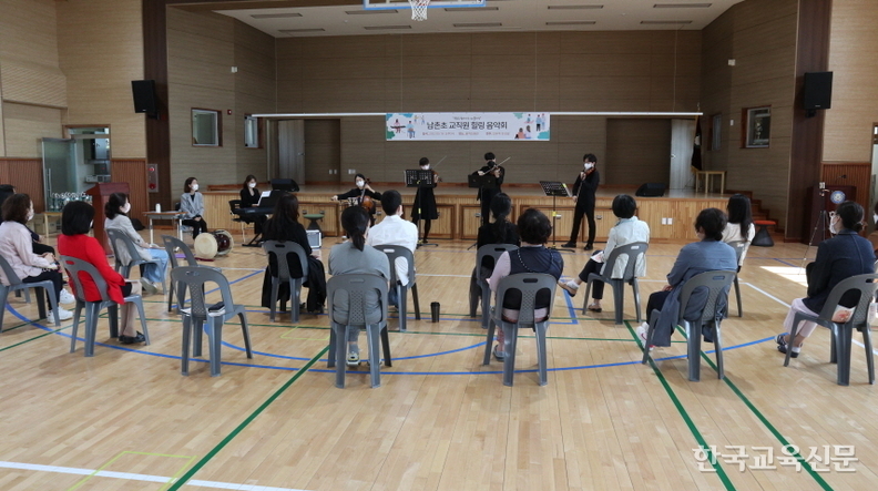 경기 용인 남촌초등학교는 5월 16일 스승의 날을 맞아 '학교로 찾아가는 1m 클래식' 연주를 하는 인뮤직 앙상블을 초청해 남촌초 교직원 힐링 음악회를 개최했다.