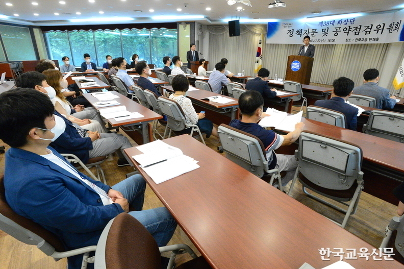 한국교총은 20일 제38대 회장단 정책 자문 및 공약점검위원회(이하 위원회) 발대식을 갖고 1차 회의를 진행했다.
