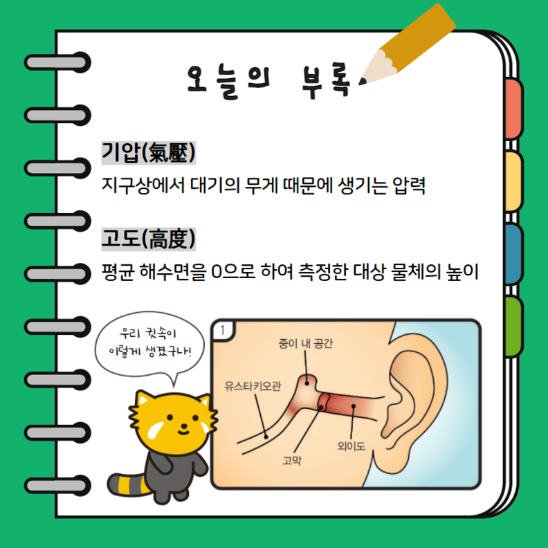 ㄱ. 귀 안쪽 중이 공간의 기압과 몸 바깥쪽의 기압에 차이가 난다.