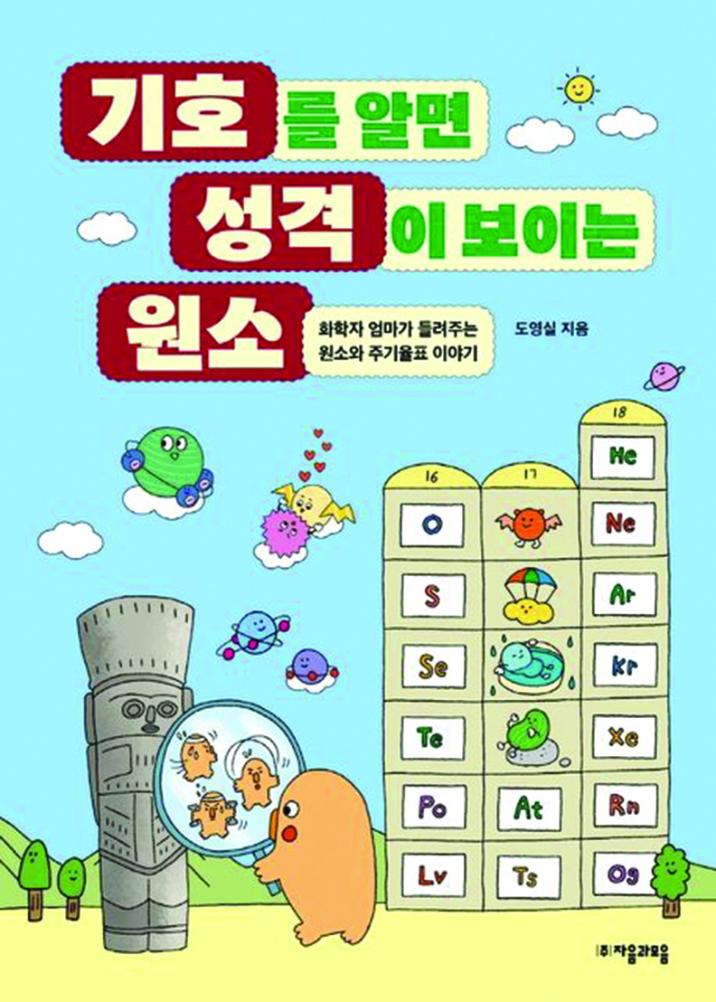 (도영실 지음, 자음과모음 펴냄, 136쪽, 1만4,500원) 매일 쓰는 일상용품부터 복잡한 기계까지 모든 곳에 빠지지 않는 게 ‘화학’이고, 화학은 아주 작은 원소와 원자를 중심으로 이뤄진다. 결국 우리 눈에 보이지도 않는 아주 작은 입자들에 의해 이 세계가 움직이고 있는 셈이다. 이 책은 주기율표를 통해 118개 원소가 우리 주변에서 어떻게 존재하며 어떻게 세상을 구성하는지 흥미롭게 안내한다.