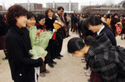 서울 강동구 명일중학교(교장 유좌선)에서는 지난 2월 15일 학교 운동장에서 '부모님과 함께하는 졸업식'이 화기애애한 가운데 열렸다. 이 세상에 자신의 귀한 존재를 있게 해주시고, 나아가 오늘의 졸업식이 있기 까지 뒷바라지에 헌신적이셨던 부모님의 손을 꼬옥 잡은 졸업생들은 추운 날씨도 아랑곳 하지 않고 얼굴마다 홍조를 띠고 있었다. 졸업식장을 조금 늦게 찾은 학부모들도 운동장에서 벌어지고 있는 졸업식장의 새로운 광경을 참신하다 생각하면서 자연스럽게 자녀를 찾아 대열에 끼었다. 훈화 중이던 교장 선생님도 이 훈훈한 분위기에 갑자기 졸업생 모두를 부모님을 향해 돌아서게 했고, 부모님을 마주 향한 졸업생들에게 부모님께 감사의 절을 올리도록 말씀하시자 500여 졸업생들이 하나같이 90도가 될만큼이나 꾸벅 감사의 인사를 드렸다. 이에 모든 부모님들은 약속이나 한 듯 자랑스럽게 졸업을 맞은 자녀를 힘껏 안아주었다. 졸업식장을 찾은 할머니도, 아버지도, 어머니도, 오빠 동생도.... 누구나 할 것없이 모두가 힘껏 안았다. 졸업생은 딱딱하게 줄맞춰 서고, 부모님들은 그 주변에서 팔짱끼고 관람하던 식의 졸업식이 간단한 생각의 차이로 정감에 넘친 흐뭇한 졸업식이 된 것 같아