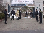 "학교폭력은 어떠한 경우도 용납되지 않습니다. 우리모두 즐거운 학교생활을 위해 학교폭력을 예방하고, 그동안의 학교폭력은 자진신고합시다" 3월 22일 오전 8시, 서울 강현중학교 정문 앞의 모습이다. 이 학교 생활지도부장 및 교사, 경찰관, 학부모가 함께 교문에서 피켓을 들고 학교폭력 예방에 관한 홍보활동을 하고 있었다. 인근의 상도3동 파출소에 근무하는 경찰관 다섯명과 학부모, 이 학교의 생활지도부 교사들이 합동으로 홍보활동을 하였다. 처음에는 무슨일이 있는가 싶어 모여들었던 학생들과 인근의 주민들은 홍보활동임을 알아차리고 삼삼오오 모여서 이야기를 나누고 있었다. "정말로 학교폭력이 심각하긴 한 모양입니다. 저렇게 경찰관까지 나와서 홍보활동을 하는 것을 보니...." 인근 주민의 이야기이다. "학교앞에 경찰이 나타나니 무섭기도 하지만, 그래도 직접 경찰관들이 나서는 것을 보니 앞으로는 안심하고 학교에 다닐 수 있을 것 같습니다" 이 학교 2학년 L양의 이야기이다. 덧붙여서 L양은 "정말이지 학교폭력은 사라져야 합니다. 이렇게 시작한 것이니만큼, 반드시 뿌리뽑아 주셨으면 좋겠습니다"라고 소망을 이야기 하였다. 그러나, 이런 활동을 모두 긍정적으로 보고 있는 것