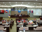 -‘저탄소녹색성장’의제로 수원시의회 본회의장서- Today, on this meaningful occasin of a virtual UN General Assembly, we are to promise and declare the following for the peace and the well-being of the global village that we need to preserve forever. (우리는 오늘 뜻깊은 모의UN총회에 즈음하여 영원토록 보전해야할 지구촌의 평화와 건강을 위해 다음과 같이 약속하고 선언한다.) 의장을 맡은 어린이대통령 나운영 양이 공동선언문을 발표하자 각국 대표들은 박수로서 화답했다. 3부제도를 운영해 화제를 모으고 있는 수원 영화초 어린이들이 작년에 이어 전국 최초로 영어로 모의UN총회를 개최해 또다시 주목을 받았다. 수원 영화초교(교장. 오세건)는 24일 각 학급에서 뽑힌 18개국 국가대표들과 어린이대통령, 의회의장, 대법원장 등 3부 임원들이 나라별 전통의상을 입고 모인 가운데 수원시의회 본회의장에서 모의UN총회를 개최하였다. ‘2009 영화어린이나라 모의UN총회’(MODEL UNITED NATIONS 2009)는 작