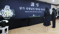 지난 4일 자택에서 숨진 충남 A중 교사의 추모 공간이 마련된 아산교육지원청 대회의실에 14일 추모객들의 발길이 이어지고 있다. 추모 공간은 17일까지 운영된다.