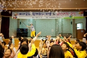 북내초등학교 병설유치원(원장 김경순)에서는 5월 12일, 가정의 달과 어린이날을 기념하여 원내체험행사로 ‘삐에로와 함께 하는 버블 풍선매직’ 공연을 개최하였다. 북내 본교와 분교 유치원 원아들뿐만 아니라 북내초 전교생, 학부모, 교직원, 지역 에벤에셀 어린이집 원아 등 200여명이 참여한 버블 매직 공연은 모처럼 지역교육가족에게 웃음과 행복을 전하는 좋은 기회가 되었다. 본 공연은 총 2부로 나누어 진행되었으며, 1부 풍선 매직쇼는 참석한 아이들과 함께 풍선을 직접 불어보고 여러 가지 동물, 꽃, 하트 모양 등을 만들어 마임으로 표현해 보는 시간을 가졌으며, 2부는 다양한 형태의 비눗방울을 관람하며 대형 비눗방울 속에 직접 들어가 보는 체험의 시간도 가졌다. 이 프로그램을 기획한 북내 병설유치원 박경숙 부장교사는 “북내초 본·분교 원아들뿐만 아니라 지역사회가 함께 하는 마을교육 공동체를 실현하는 일환으로 본 공연을 개최하게 되었다.”고 밝혔다. 특히 “사회적으로 안전사고 예방에 대한 관리와 참여 교육이 중요시 되는 시점에 아이들이 외부로 나가 활동하지 않아도 질적으로 우수한 프로그램을 원내에서 안전하게 제공할 수 있어 더 뜻 깊다.”고 전했다. 또한 학부모