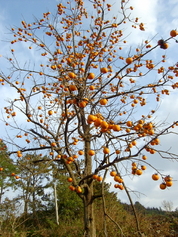 서리가 내리자 감나무에 잎들이 모두 떨어졌습니다. 그러자 잎새 뒤에 숨어 있던 주황색 감들이 일시에 나타났습니다. 햇빛을 받아 반짝거리는게 유혹적입니다. 주렁주렁 탐스럽게 익은 모습이 지나가는 나그네의 가슴에 가을의 아름다움을 듬뿍 선사합니다.