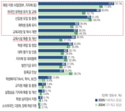 교육부와 한국대학교육협의회는 31일 ‘2025년 10월 대학정보공시 분석 결과’를 발표했다. 4년제 일반·교육대학의 2024년 대학 강의 공개강좌 수는 ‘K-MOOC’ 1892개와 ‘KOCW’ 596개를 포함해 총 2488개로 2023년(2162개)보다 15.1% 증가했다. 국공립대는 480개로 전년(399개)보다 20.3%, 사립대는 2008개로 전년(1763개)보다 13.9% 늘었다. 수도권은 1264개로 전년(1032개)보다 22.5% 올랐지만, 비수도권은 1224개로 전년(1130개)보다 8.3% 올라 각각의 증가율 차이를 보였다. 전문대학 강의 공개강좌 수는 148개로 2023년(120개)보다 23.3% 증가했다. 이중 사립대는 147개가 전년(119개)보다 23.5% 늘었다. 수도권 증가율(14.0%) 보다 비수도권 증가율(47.1%)이 더 높아 4년제 대학과 대조를 이뤘다. 2025년 4년제 일반 사립대(법인) 수익용 기본재산 확보율은 100.6%로 2024년(97.0%)보다 3.6%포인트(p) 증가했다. 2024년 법정부담금 부담율은 54.3%로 2023년(53.1%)보다 1.2%p 증가했다. 전문대의 경우 2025년 사립대 수익용