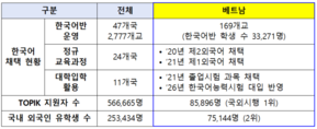 베트남이 올해부터 한국어능력시험(TOPIK, 토픽) 성적을 대학 입학에 공식적으로 활용한다. 교육부와 국립국제교육원은 베트남 교육훈련부에 지난달 12일 장관 결정문을 통해 토픽 성적을 대입전형에 활용할 수 있음을 공식적으로 허가했다고 3일 밝혔다. 베트남 대입제도는 우리나라의 대학수학능력시험에 해당하는 전국 단위의 ‘고교 졸업시험’을 중심으로 운영된다. 베트남 학생들은 졸업시험 과목 중 수학과 국어(베트남어)는 필수이고, 외국어·역사 등 9개 과목 중 2개를 선택해 총 4개 과목에 응시한다. 여기서 베트남 고교 졸업시험 외국어 과목을 토픽 성적으로 대체할 수 있게 된 것이다. 토픽 3급 이상 취득 학생은 졸업시험 선택과목 1개를 면제받고 환산된 점수를 졸업시험 성적으로 인정받을 수 있다. 이번 결정은 베트남 현지에서 높아진 한국어의 위상과 토픽의 공신력에 대한 높은 신뢰도에 영향을 받은 것으로 보인다. 베트남은 2020년 한국어를 제2외국어로 채택한 후 2021년에 제1외국어와 고교 졸업시험 과목으로 채택한 바 있다. 또한 베트남 현지에서의 토픽 시험은 한국교육원(호치민 하노이)에서 파견한 중앙 관리관이 감독하고, 시험장에 현지 경찰(공안)을 배치