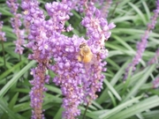 아침 저녁에는 서늘 하지만 낮 더위가 30도를 넘어 더위가 아직 한창이다 여름 곷 맥문동이 많이 피었습니다 굴벌 들이 꽃가루를 뭉쳐 갑니다 사진을 찍으려 하니 나를 찍지 마라며 눈을 커게 뜨고 보고 있습니다