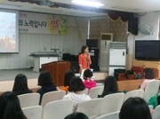 순천동산여중은 2일(목) 10시부터 12시 30분까지 본교 유동관에서 이옥수 작가를 초청 문학수업을 하였다. 이번 수업 준비를 위해 1학년 학생들은 2주 전부터 작가의 책 파라나 어쩌자고 우린 열일곱 키싱 마이 라이프 개같은 날은 없다 등의 책을 읽었다. 같은 책을 읽은 친구들끼리의 모둠활동을 통해 작품에 대한느낌을 충분히 나눈 상태라 작가를 만나는 오늘을 너무 기다렸다고 한다. 오늘 수업은 작가가 우리 모두 ‘파라나’라는 신작 제목으로 이야기를 풀어나가셨다. 너와 내가 모두 파라나(마음이 푸르러서 언제나 싱싱한 기운을 느끼게 하는 아이)임을 즉, 내가 나를 사랑하는 법에 대한 이야기를 학생들의 눈높이에 맞추어 감동적으로 전달해 주셨다. 또 뇌근육을 키우기 위해 독서를 열심히 해야 한다는 말씀도 잊지 않으셨다. 4반 김혜지 학생은 “이옥수 작가님! 제가 책 읽는 걸 너무 싫어해서 선생님께도 많이 혼나고 엄마한테도 잔소리를 많이 듣는 편이에요. 그런데도 책은 정말 싫어해요. 그런데 국어시간을 통해 어쩔 수 없이 ‘개날다’라는 책을 읽었는데. 왠 일인지 이건 너무 재밌었어요! 예전에 얘들이 책 이야기 할 때 이해 못했는데 이제는 얘들하고 책이야기도 많이 하겠어요. 앞으로도 재밌고, 공감되는 책 많이 써주세요.” 3반 장유빈 학생은 “저는 kissing my life를 읽었는데 정말 속에서 느낀 점이 많았던 거 같아요. 정말 좋았어요. 작가님의 책을 두 권 읽었는데 두 권 다 내용도 좋고, 작가님이 저희를 많이 사랑해 주신다는 마음을 느꼈거든요!! 앞으로도 그런 마음으로 좋은 책 많이 써 주세요.” 라고 간곡히 부탁을 하기도 하였다.