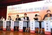 교총은 주한미국대사관과 함께 18일 한국교총 단재홀에서 ‘한-미 학교폭력 전문가 간담회’를 열었다. 미국의 학교폭력예방사업인 ‘불리 프로젝트’의 자문위원이자 ‘왕따예방법’의 저자로 알려진 조엘 하버 박사는 발제를 통해“학교에서 어른들의 역할이 중요하다”면서 “안전한 학교환경과 문화를 만드는 일에 집중해야 한다”고 주장했다. 그는 또 “학교폭력은 일부 교사의 문제가 아니라 모든 교직원이 학교폭력 발생 가능성을 염두에 두고 끊임없이 관심을 가져야 한다”며 “학생들을 지도·감독할 어른들을 늘려야 한다”고 주장했다. 학교폭력의 특성상 지속적으로 개입을 해야 하는데, 이를 위한 인력이 없이는 안 된다는 것. 한국측 발제자를 맡은 황홍규 교육부 학생복지안전관은 ‘학교폭력종합대책’의 성과와 미비점, 그리고 ‘현장중심 학교폭력대책’에서 보완된 사항을 중심으로 국내 학교폭력 대응 현황을 소개했다. 토론에는 생활지도부장, 상담교사 등 현장교원들과 국내 학교폭력 전문가들이 대거 참여했다. 설광섭 경찰청 여성청소년과장은 “미국은 소년범 다이버전 프로그램을 다양하게 운영하고 있는 것으로 알고 있는데 이를 참고해 우리나라도 경찰 단계에서 소년범 선도조건부 훈방제도를 운영할 필요가 있다”고 주장했다. 조희원 청소년폭력예방재단 상담치료센터소장은 하버 박사가 개발한 ‘정서적 응급처치도구’나 집단따돌림 문제해결을 위한 아동용 소셜 온라인 게임 등 다양한 도구를 활용하는 방안의 필요성을 제기했다. 이상민 부산시교육청 장학관은 가정법원이 교사를 보호위탁위원으로 지정해 지도에 불응하는 보호소년에게 교사가 보호조치 변경 신청권을 활용할 수 있도록 교사의 지도권을 강화한 사례를 들며 “학교 폭력 대응은 학교의 힘만으로는 어려운 현실에서 가정과 사회의 교육적 역할 강화가 필요하다”고 했다. 이양희 경기 도창초 교사는 “교사들이 주체적 역할을 해야 하지만 교권 추락 등으로 사기가 저해돼 있다”며 “교사의 꿈과 열정을 회복시켜주는 일이 곧 학교폭력 예방을 위한 정책이라는 점을 기억했으면 좋겠다”고 현장의 목소리를 전했다.