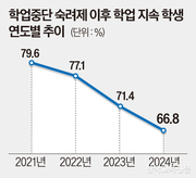 자퇴를 고민하는 학생에게 일정 기간 숙고의 시간을 제공하는 학업중단숙려제의 학업 지속 성과가 최근 4년 사이 뚜렷한 하락 흐름을 보인 것으로 나타났다. 제도를 거친 뒤에도 학생 3명 중 1명은 결국 학교를 떠나는 구조가 이어지면서 운영 방식 전반에 대한 점검 필요성이 커지고 있다. 23일 국회 교육위원회 소속 진선미 의원(더불어민주당)이 교육부로부터 제출받은 자료에 따르면 학업중단숙려제 참여 학생의 학업지속률은 2021년 79.6%에서 2022년 77.1%, 2023년 71.4%로 하락한 데 이어 2024년에는 66.8%까지 떨어졌다. 3년 사이 12.8%포인트 낮아진 것이다. 참여 인원도 줄었다. 2021년에는 2만 5414명이 숙려제에 참여해 이 가운데 79.6%인 2만 221명이 학업을 이어갔다. 반면 2024년에는 1만9946명이 참여했고 이 중 66.8%인 1만3315명만 학교에 남았다. 참여 규모와 복귀 인원 모두 감소했다. 학교급별 격차도 확인됐다. 2024년 기준 학업지속률은 초등학교 72.7%, 중학교 82.8%였으나 고등학교는 58.6%에 머물렀다. 고교 단계에서는 숙려 기간을 거쳐도 절반가량만 학업을 이어가는 구조로 다른 학교급과 비교해 회복력이 상대적으로 낮았다. 지역 간 편차도 20%포인트 이상 크게 나타났다. .2024년 학업지속률이 가장 낮은 곳은 울산으로 52.4%였고, 경북 57.0%, 대구 60.5%, 경남 60.6%도 전국 평균 66.8%를 밑돌았다. 반면 인천은 78.8%로 가장 높았으며 세종 76.2%, 충북 72.7%가 뒤를 이었다. 서울은 64.9%로 평균에 비해 다소 낮은 수준이었다. 학업중단숙려제는 자퇴 의사를 밝힌 학생에게 최소 2주에서 최대 7주까지 숙려 기간을 부여하는 제도다. 학교는 학업 중단 의사를 표명한 학생에게 이를 의무적으로 안내하고, 학생과 학부모가 참여 여부를 결정한다. 숙려 기간에는 심리 상담, 진로 탐색, 문화·예술·체육 활동, 직업 체험, 대안교육 연계 등 프로그램이 제공된다. 충동적 중단을 예방하고 학업 복귀를 지원하는 데 목적이 있다. 다만 최근 수치 흐름은 제도의 예방 기능이 예전만큼 작동하지 않고 있음을 보여준다. 특히 고교 단계의 낮은 지속률과 지역 간 격차는 숙려 기간 운영뿐 아니라 사후 연계·지원 체계 전반을 점검할 필요성을 시사한다. 단기간 프로그램만으로는 학업 부진, 진로 불안, 가정환경 문제 등 복합 요인을 충분히 완화하기 어렵다는 분석도 나온다. 진선미 의원은 “학업중단숙려제를 운영하고 있음에도 학업지속률이 감소하고 있는 것은 제도가 현실을 충분히 반영하지 못하고 있다는 신호”라며 “학생들의 학업 중단에는 여러 요인이 복합적으로 얽혀 있는 만큼 보다 종합적인 접근을 통해 실효성을 높여야 한다”고 밝혔다. 이어 “단순한 숙려 기간 부여에 그치지 말고 사후 관리와 맞춤형 지원까지 체계적으로 보완해야 한다”고 강조했다.