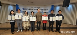 한국교총 산하 한국교육정책연구소(이사장 강주호·소장 이종욱)가 지난 1년간 추진한 ‘1기 정책 아카데미 수료식’이 24일 서울 서초구 교총회관에서 열렸다.(사진) 정책 아카데미는 연구소 전문위원들이 참가해 주요 교육 이슈에 대한 현장 교원의 의견과 경험을 공유하고, 교총의 교육정책 추진에 반영하기 위해 지난해 3월 시작했다. 매월 1회씩 총 11차례 진행된 아카데미는 발제자의 주요 현안 분석 발표에 이어 참석자들이 그에 대한 의견을 더하는 방식으로 진행됐으며 고교학점제, 민주시민교육, 교육예산, 기초학력, IB 학습 등 다방면에 걸친 주제를 다뤘다. 참석 전문위원들에게 일일이 수료장을 건넨 강주호 이사장은 “아카데미를 통해 교육 현장을 더욱 이해할 수 있는 시간이 됐다”며 “이를 바탕으로 전문성을 더한 현장 의견 중심의 정책 추진에 더욱 힘쓰겠다”고 밝혔다. 연구소는 전문위원을 더욱 확대해 이달부터 2기 정책 아카데미를 추진한다는 계획이다.