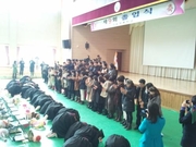 이제 2월에 접어들면서 각급학교에서 졸업이 시작되었다. 입춘을 맞이하여 전남 보성군 미력면 보성강가에 위치한 조그만 학교인 용정중학교의 제9회 졸업식은 남달랐다. 학교 앞을 흐르는 보성강은 꽁꽁 얼어붙어 썰매타기도 가능할 것 같이 추운 날씨의 풍경이다. 그러나 날씨가 춥다고 하여 모든 것이 얼어붙은 것은 아니다. 졸업식장의 분위기는 뜨거운 열기와 꿈을 토하는 학생들의 열기가 미래를 뜨겁게 달구어 나갈 수 있음을 느끼기에 충분하였다. 해마다 이맘때가 되면 중고등학교의 졸업식이 날이 갈수록 변화를 일으켜 세상을 떠들썩하게 하고 있다. 그래서 교육행정 당국과 경찰은 신경을 곤두세우고 있다. 하지만 아담한 학교의 졸업식은 알차고 영근 포도송이같은 탐스러움을 표출하고 있다. 재학생의 주악에 맞춰 등장하는 졸없생 48명의 앞에는 선생님이 앞장 서서 등장하고 식장에 임석한 학부모와 내빈 재학생들은 박수로 졸업생들을 맞이하였다. 순서에 의하여 의식이 진행되는 가운데 황인수 학교장님은 "임진년 용해를 맞이하여 꿈을 이루기 위해서는 스티브 잡스처럼 어려움을 극복하고 한가지에 미쳐야 한다는 것이며, 좋은 습관으로 살아간 하루하루가 재능도 이긴다는 것을 강조하면서, 습관은 성품을 만들고 세상 속에서 나눔과 베품이이루어지는 삶을 살아가기를 기대한다."고 하였다. 다른 학교의 졸업식이 소란스럽고 아주 짧은 시간에 이루어진 것에 비하여 학생 개개인에게 졸업장을 전달하고, 모든 졸업생의 20년 후 미래를 꿈꾸는 모습을 발표하여 많은 시간이 소요되었다. 직업이 아닌 어떤 사람으로 살아갈 것인가를 자신하게 약속하는 모습이 대견스러웠다. 모두 발표한 꿈단지를 학교 정원에 묻으면서, 20년 후에 만나 개봉하자는 순서는 다른 학교에서는 그리 쉽게 발견할 수 있는 것은 결코 아니다. 그리고 졸업생 모두가 그동안 길러주신 학부모님께, 또 3년동안 가르쳐주신 선생님들에게 넙죽하게 엎드려 절하는 모습은 참석한 학부모님과 내빈들의 가습에도 새겨질 영상의 한토막이 될 것이다. 졸업한다도 하여 모든 것이 끝난 것도 아닌데 마지막인 것처럼 행동하는 학생들의 모습이 신문에 보도되는 것을 보면서 이들은 학교에서 무엇을 배웠으며, 선생님은 무엇을 추억으로 남기기를 원하면서 가르쳤는지 되돌아 볼 일이다. 이제 교육다운 교육을 위하여 우리는 마음과 마음으로 만나야 한다. 이러한 만남이 이뤄지기 위해서는 30학급을 넘나드는 대규모 학교의 규모는 적정 규모의 학급당 인원과 학생스로 조정되어야 한다. 정부도 교육이 문제라고만 지적할 것이 아니라 인간적인 만남을 통하여 학생들을 변화시킬 수 있도록 환경 조성에도 노력을 하여야 할 것이다. 변화가 무쌍한 세로운 세상으로 둥지를 떠나 날개짓하는 학생들의 앞날에 영광이 있기를 기원한다.