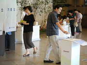 24일 오전, 서울 서초구 한국교총회관에 마련된 투표소에서 시민들이 무상급식 지원범위에 관한 주민투표를 하고 있다. 오후 5시 현재 투표율은 20.8%이며, 투표는 오후 8시까지 진행된다.