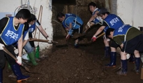 4일 교총 사무국 직원들은 우면산 산사태로 큰 피해를 입은 서울 서초구 소재 국립국악원에서 호우 피해 복구 지원 작업을 펼쳤다.