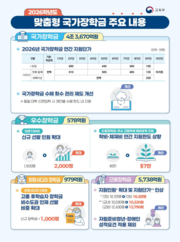 교육부는 11일 ‘2026년 맞춤형 국가장학금 지원 기본계획’을 확정하고 예산 증액에 따라 수혜자 확대, 제도 개선 등을 진행했다고 밝혔다. 이번 계획에 따르면 국가장학금 최대 수혜 횟수 관리 제도가 개선된다. 기존에는 대학 졸업 이후 동일 대학에 다시 신·편입학할 경우, 소속 학교의 학제 기준 수혜 한도가 우선 적용돼 개인별 수혜 한도가 남은 경우에도 국가장학금을 받기 어려웠으나, 이제 개인별 수혜 한도 내에서는 추가 지원을 받을 수 있다. 인문학 소양을 갖춘 인재 양성을 위한 인문·사회 계열 우수장학금(인문 100년) 신규 선발 인원이 500명 늘어나고, 저소득층 우수 고교생에게 해외 유학 기회를 제공하는 ‘드림장학금’의 학비·체재비 연간 지원 한도가 종전 연간 6만 달러에서 7만 달러로 상향된다. 근로장학생은 전년 대비 4000명 확대되며, 최저 임금 인상 등이 반영돼 지원 단가도 오를 전망이다. 자립준비청년(보호종료아동) 및 장애인 대학생의 근로장학금 지원을 위한 성적 기준 적용을 제외할 수 있도록 했다. 고졸 후학습자 대상 희망사다리장학금 Ⅱ유형의 비수도권 인재 선발 비중은 확대되고 신규 장학생이 1000명 추가 선발될 예정이다. 이번 계획에서 2027년부터 적용 예정인 ‘학자금 지원 구간 산정 방식 개편’도 사전 예고됐다. 이는 국가데이터처 ‘소득분위’와의 혼동을 줄이고 지원 구간 변동에 따른 수혜자 혼선을 최소화하기 위해 개편된다. 2026년 맞춤형 국가장학금 지원 규모는 총 5조1161억 원으로 전년 대비 1354억 원 증액됐다. 구체적으로 국가장학금 4조3670억 원, 근로장학금 5738억 원, 우수장학금 578억 원, 희망사다리장학금 979억 원, 주거안정장학금 175억 원이 학생들에게 지원될 예정이다. 국가장학금을 지원받기 위해서는 반드시 신청 기간 내 국가장학금을 신청해야 한다. 현재 2026년 1학기 국가장학금 2차(최종) 통합 신청 기간이므로, 아직 신청하지 않은 학생은 신청 기간(2월 3일~3월 17일) 내 한국장학재단 홈페이지(http://www.kosaf.go.kr)과 모바일 앱(‘한국장학재단’)을 통해 신청해야 한다.