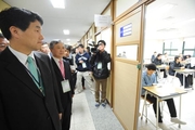 18일 이주호 교과부 장관과 김성열 한국교육과정평가원 원장이 2011학년도 대학수학능력시험장인 서울경복고를 둘러보고 있다. 2011학년도 대학수학능력시험을 응원하기 위해 일찍부터 자리를 잡은 후배들이 본교 선배들의 수능 대박을 기원하고 있다. 제1교시 언어영역시험 답안지를 받아든 학생이 마음을 가라앉히기 위해 묵념을 하고 있다. 대학수학능력시험을 치르기 위해 고사장에 도착한 한 수험생의 간절한 기도.