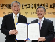한국교총(회장 안양옥)은 11일 한국교육과정평가원(원장 김성열) 제4회의실에서 한국교육과정평가원과 학술, 연구, 정보 등 교류협정 체결식을 가지고 상호 우호증진과 공동의 발전을 도모했다. 교류협정체결식이 끝난 뒤 양측 관계자들이 모여 기념촬영을 했다.