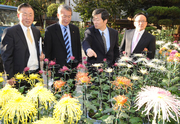 9일 서울 서초구 양재고등학교 김종근 교장은 '특색있는 학교 만들기' 선도학교 운영 보고회를 가진 뒤 학생들이 직접 가꾸어 놓은 국화꽃을 내빈들과 둘러보고 있다. 좌로부터 김종근 양재고 교장, 안양옥 교총 회장, 곽노현 서울시교육감, 진익철 서초구청장. 양재고등학교는 2009-2010 교육과학기술부 지정 '자연친화적 창의.인성 함양을 위한 Eco-school 운영' 이란 주제로 선도학교 운영 보고회를가졌다.