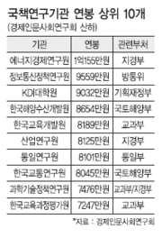 과학기술정책연 7276만원, 교육과정평가원 7247만원 한국교육개발원 등 교과부 연구 용역을 수행하는 국책연구기관의 평균 연봉이 경제인문사회연구회 소속 23개 기관 중 상위에 속하는 것으로 나타났다. 국회 예산정책처는 경제인문사회연구회 산하 23개 정부출연 연구기관들의 2009년 인건비를 공개하며 지식경제부 용역이 대부분인 에너지경제연구원의 1인당 평균연봉이 1억154만9000원으로 1억 원을 넘어섰다고 밝혔다. 1인당 평균연봉이 9000만원을 넘어선 국책연구기관은 방송통신위원회와 기획재정부로부터 연구의뢰를 많이 받는 정보통신정책연구원(9559만원) KDI대학원(9032만원) 등 2곳이었다. 한국해양수산개발원(8654만원) 한국교육개발원(8189만원) 산업연구원(8125만원) 통일연구원(8101만원)은 국토해양부 교과부 지식경제부 통일부의 싱크탱크로 매년 대규모 연구용역을 수행하고 있다. 특히 교과부 용역 기관인 한국교육개발원, 과학기술정책연구원(7276만원), 한국교육과정평가원(7247만원) 등 세 곳이 10위 안에 들어 교과부의 연구 용역 규모가 큰 것으로 드러났다. 반면 청소년정책연구원은 1인당 평균인건비가 에너지경제연구원의 절반수준인 5444만원으로 가장 적었다. 한국노동연구원 역시 5449만원으로 낮은 수준에 속했다. 육아정책연구소(5506만원) 한국형사정책연구원(5869만원)도 5000만 원 대를 기록했다. 23개 국책연구기관의 평균 인건비는 7183만원이었다. 예산처는 “연구기관별 인건비 지급액 차이는 관련 부처로부터 수탁 받은 과제의 규모에 따라 발생한다”면서 “지식경제부 국토해양부 교과부 등 현안과 관련된 정책용역을 많이 수행하는 연구기관의 경우 성과급이 상대적으로 크게 편성돼 있다”고 분석했다. 또 “인건비 중 부족한 부분을 경쟁에 의한 연구과제 수탁수입으로 충당하게 돼 관련 부처의 수탁과제 용역이 많을수록 인건비도 늘어난다”면서 “수탁과제의 규모가 작은 연구기관은 상대적으로 인건비 지급규모가 적어 우수 인력 채용과 유지에 어려움을 겪고 있다”고 지적했다.