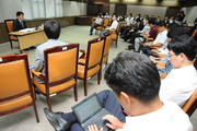 이주호 교육과학기술부 장관이 10일 정부중앙청사에서 열린 출입기자 간담회에서 교육 현안에 대한 방침을 밝히고 있다. 이 장관은 취임 후 첫 기자간담회에서 "공정한 교육기회가 하반기 교육정책의 화두가 될 것"일라고밝혔다.