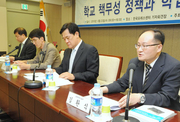 23일 한국교육개발원과 재미한인교육연구자협회 공동 주최로 한국프레스센터 19층 기자회견장에서 '학교 책무성 정책과 학업성취 데이터의 활용'이란 주제로 교육 정책 공동 심포지엄이 열렸다. 김환식 교과부 교육정보기획과장이 한국의 학교 책무성 정책의 현황과 과제에 대해 발표 하고 있다.