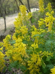 어린이날, 산을 좋아하는 동료 교장 4명이 축령산(祝靈山. 886.2m)을 찾았다. 축령산은 남양주시 수동면 외방리와 가평군 상면 행현리 경계에 있는 산이다. 능선이 서리산과 이어져 있다. 매표소 입구에 들어서니 입장료 1인당 천원, 주차료 3천원을 받는다. 오전 10시 경에 도착했는데 벌써 주차장은 꽉 차 있다. 일행은 주차장에서 수리바위, 남이바위, 추령산 정상, 절고개, 억새밭 사거리, 전망대, 잔디광장을 거쳐 주차장으로 돌아오는 코스를 택했다. 첫 번째 맞이해 주는 노란색의 꽃은 괴불주머니. 길 양 편 곳곳에 무더기로 피어 등산객의 눈길을 끈다. 1년생초로 자주괴불주머니도 있다고 하는데 여기서는 노랑색의 괴불주머니만 발견된다. 능선을 따라 오르다보니 왼쪽에 얼레지 군락이 보인다. 다년생 초본인데 잎은 해병대 군복처럼 얼룩져 있고 꽃줄기가 가날픈데 전체적인 인상은 남자를 유혹하는 날씬한 여인을 연상시킨다. 지난 번 올랐던 천마산보다는 야생화의 종류가 다양하지 못하지만 괭이밭, 미치광이풀, 앉은부채, 꿩의바람꽃, 현호색, 노랑제비꽃, 양지꽃, 피나물 등이 보인다. 특히나 산 정상 가까이 능선에서는 노랑제비꽃이 지천으로 깔렸다. 등산로 양편이 노랗게 물들었다. 언뜻 보면 노랑제비꽃과 비슷한데 자세히 보면 잎 모양과 꽃 모양이 차이가 나는 양지꽃도 군데군데 피어 있다. 잎을 자르면 피 같은 액체가 흐르는 피나물도 노란꽃을 피웠다.노랑붓꽃도 보인다. 그러고 보니 5월 초순의 축령산은 노랑색의 야생화 천지다. 우리 일행의 눈동자도 노랗게 물들었다. 오늘 야생화 안내는 일행 중 채 교장이 맡았는데 그는 야생화 뿐 아니라 나무, 새 등에도 조예가 깊다.