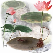 무릇 세상사가 다 그런 것 같다. 어떤 일이든 첫 경험은 오래 기억의 창고에 갈무리가 되는가 보다. 특히나 그것이 한창 감수성 강할 때 겪은 일이라면. 학창 시절의 어느 늦은 가을날이었던 듯싶다. 그때 무슨 일로 해서인가 교외로 나갔다가, 줄기까지 다 말라 허물어진 연 밭에서 뿌리를 캐내는 낯선 광경을 목격한 뒤로 한동안 깊은 충격에서 헤어나질 못했었다. 그리고 그날의 일은 긴긴 세월 동안 의식 가운데서 떠나질 않았다. 물 위로 솟은 모습만을 그것의 전부로 알고 있던 시절, 불가(佛家)에서 성화(聖花)로 우러르는 꽃인 연의 뿌리를 캐낸다는 것은 당시 내 정서상으로선 도저히 받아들일 수 없는 불경스런 행위라 여겨졌기 때문이다. 세월의 흐름과 함께 몇 차례 더 이런 광경을 만날 기회가 주어졌었다. 하지만 그럴 적마다, 처음 맞닥뜨렸던 그 뒤통수를 얻어맞은 듯 한 충격은 많이 가시었다. 대신 한결 담담해진 마음으로 연의 삶과 우리들 인생행로의 상관관계를 곰곰이 헤아려 보는 특별한 계기로 받아들일 수 있게 되었다. 세상일을 보는 눈이 세월 따라 시나브로 넓어지고 깊어져 온 까닭에서이리라. 연의 한살이는 우리네 삶의 모습을 그대로 빼닮았다. 연만큼 생로병사의 구분이 확연한 꽃이 있을까. 그의 일생은 참으로 극적이다. 모딜리아니의 여인상처럼, 가늘고 긴 목을 뽑아 올리고서 얼 한 점 없는 청순한 자태로 수많은 행인들의 경탄을 자아내다가 어느 순간 허망한 몰골로 사그라지고 마는 그 특유의 생태, 부처의 가르침 제행무상(諸行無常)의 이법을 가장 명징하게 보여주는 꽃이 바로 이 연이 아닐까 한다. 죽은 듯 숨죽이고 있던 대지에 서서히 봄기운이 감돌면 크고 작은 생명체들은 비로소 길고 긴 겨울잠에서 깨어나 기지개를 켠다. 연의 새봄도 그렇게 열린다. 예서 쏘옥 제서 쏘옥, 꼭 돋아나는 죽순을 닮은 앙증맞은 잎사귀들이 세상 소식의 궁금함을 이기지 못하겠다는 듯 수줍게 고개를 내민다. 그리고는 축복과도 같은 태양빛의 세례를 받고서 하루가 다르게 하늘 쪽으로 다투어 키 재기를 하는 것이다. 쏟아지는 뭇 개구리들의 울음소리는 연의 여름을 알려주는 전령사이다. 굵은 빗줄기 듣는 날을 골라 한번쯤 연 밭엘 나가 보라. 우중(雨中)의 졸업식장 같은 풍경이 연출되는 특별한 만남을 경험할 수 있을 것이다. 잎사귀를 지붕 삼아 도르르 도르르 빗방울을 굴리며 개구리 울음소리에 귀를 모으고 있는 연의 무리들, 그것은 우산을 받쳐 들고서 조용히 축사를 듣고 선 젊은이들의 모습이다. 혈기 왕성한 청춘시절을 지나 장년에 가까워 오면, 마치 폭죽이 터지듯 연은 일제히 참아왔던 망울을 터뜨린다. 죽죽 목을 뽑아 올린 줄기에서 환하게 피어난 수만 송이 꽃들의 표정은, 군(무群舞)를 즐기는 홍학의 자태 같고 속진에 물들지 않는 군자의 모습이다. 하지만 화무십일홍(花無十日紅)이라고 했던가. 아무리 고운 얼굴도 세월을 비켜갈 수는 없는 법, 애석하게도 연의 이런 모습은 그리 오래 있어 주질 못한다. 이윽고 서녘하늘로부터 선들바람이 불어오기 시작하면 평온하던 연 밭에도 어김없이 계절의 변화가 감지된다. 가을을 일러 숙살의 계절이라고 읊은 구양수의 글귀에서처럼, 연도 시절인연이 다하면 이 대자연의 질서 앞에 깊이 고개 숙이며 다음 생을 위해 마침내 조용히 숨을 거둔다. 그리고는 온 연 밭 가득 자신들이 남긴 육신의 형해(形骸)로 뜻 모를 그림문자를 새긴다. 그것은 생사윤회의 무상함을 설하려고 보낸 부처님의 편지이다. 그 편지는 흡사 난수표 같은 것이어서, 마음의 눈으로 읽지 않으면 해독이 불가능한 특수한 상형문자로 되어 있다. 연이 이승에서의 삶과 맞바꾸며 남긴 편지를 그윽이 바라다보고 있노라면, 가섭존자의 미소를 닮은 깨달음이 어렴풋이 떠오를 것도 같다. 세상천지의 형상 가진 존재란 존재는 어느 한순간도 머무름이 없이 영원히 생주이멸(生住異滅)을 계속하며 돌고 도는 무상한 것, 이 절대의 가르침을 허허한 늦가을 연 밭에 서서 배운다. 연꽃을 빼놓고서 불교를 말할 수 있을까. 연꽃 하면 으레 불교가 생각나고 불교 하면 먼저 연꽃이 떠오르는 것은 지극히 자연스런 연상 작용이리라. 그만큼 연과 불교는 인연이 깊다 하겠다. 어찌하여 세상의 무수한 초화들 가운데 하필이면 연꽃이 불교의 표상물이 되었을까. 연은 기묘하게도 인연과 동의어 관계에 있다. 불교의 인연법을 안다는 것이 그리 호락호락한 일은 아닐 터이지만, 어쨌든 절대불변의 진리라는 사실만은 이 연을 통해 어림으로나마 깨달을 것도 같다. 연은 본래 굴지성을 지닌 줄기식물이기에, 땅속 깊이 뻗어나가 전체가 한 덩어리를 이루고 있음에도 물 위로 솟아날 때는 제각기 다른 개체로 모습을 드러낸다. 수면 위에 떠 있는 연을 보았다고 해서 연의 실체를 다 알았노라고 이야기하는 사람이 있다면, 그를 두고 연의 이치를 제대로 깨친 이라고 말할 순 없으리라. 정작 연의 귀함은 눈에 보이지 않는 물 아래 세계에 있다. 땅속으로 뻗은 뿌리의 생김생김은 끊어질 듯 끊어질 듯 이어지는 질긴 인연에 다름 아니다. 이 인연들이 얽히고설켜 캄캄한 진흙탕을 뚫고