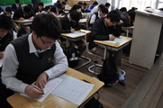 19일 서산 서령고에서는 본격적으로 1학기를 시작하는 제1회고사가 실시됐다. 바야흐로 만물이 소생한다는 봄. 봄바람도 살랑살랑 사람들의 마음도 살랑살랑 봄나들이를 가고싶다고 여기저기 아우성치는 아름다운 날에 아침 일찍부터 밤샘공부로 초췌해진 아이들이 커다란 가망을 어깨에 메고 힘겹게 등교하는 것을 보니 안타깝다. 대학입시에서 고등학교 내신 비중이 점점 높아지는 추세여서 시험기간만 되면 아이들의 신경은 날카로울 대로 날카로워져 조그만 일에도 쉽게 짜증을 낸다. 때문에 혹시 시험 중에 저질러질지도 모를 부정행위를 방지하기 위해 시험 감독도 정감독과 부감독으로 나누어 2인 1조로 감독하고 있다. 정감독은 교실 중앙에 서 있고 부감독은 교실 뒤편에서 아이들의 부정행위를 감시하는 식이다. 요즘엔 학부모님들로 구성된 학부모 시험감독도 대거 투입하여 이중 삼중으로 학생들을 감시하고 있다. 학년도 뒤섞기 때문에 옆 사람 것을 볼 수도 없다. 이래저래 살벌한 제1회고사 풍경이다.
