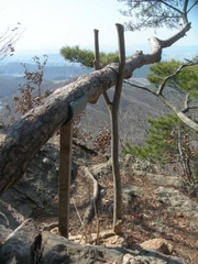 일요일 오전 광교산을 찾았다. 구운동에서 13번 시내버스를 타고 간다. 이번에는 산행 코스를 달리 하였다. 경동원을 지나 하광교 소류지에서 비로봉(490m·일명 종루봉)의 비탈을 오르는 길이다. 광교산의 아름다움을 새롭게 찾아 보려고 일부러 바꾸는 것이다. 오전이라 그런지 그늘진 길에는 서릿발이 보인다. 출발지가 버스 종점이 아니어서 산행하는 사람들이 그렇게 많이 눈에 보이지 않는다. 산새 소리를 들으며 한적한 산길을 오르니 산행 기분이 난다. 이제 능선 가까이 올랐다. 전망이 좋은 곳에서 옆으로 자라는 소나무가 보인다. 당연히 위로 자라는 것이 정상이지만 이 소나무는 그렇지 못하다. 누군가가 이 소나무를 위해 받침대를 해 놓았다. 하나는 각목으로 받쳐 놓았고 다른 하나는 Y자형 받침을 대었다. "그래 바로 이것이 수원사람들의 마음이지! 아니, 산을 사랑하는 사람이라면 옆으로 자라는 소나무가 애처로워 이렇게 하겠지. 이것을 보고 소나무에 걸터 앉는 사람은 없겠지?" 비로봉 정상 정자에서 땀을 식히면서 귤 하나를 먹으니 꿀맛이다. 곤줄박이 한 쌍이 보이기에 빵부스러기를 손바닥 위에 놓아보았다. 사람을 두려워 하는지 가까이 오지 않는다. 청계산의 곤줄박이, 박새와는 습성이 다르다. 이제 하산이다. 김준용 장군 전승지를 거쳐 내려오니 딱다구리가 나무를 찍는 소리가 들린다. 자세히 보니 나무에 구멍을 파서 그 속에 있는 벌레를 잡아 먹고 있다. 양지바른 곳에 있는 생강나무는 벌써 꽃을 피웠다. 하광교 소류지에는 버들강아지가 무리지어 있다. 버들강아지꽃이 아름다워 카메라에 담았다. 저수지 물을 배경으로 하니 제법 봄 사진 분위기가 난다. 12시 경, 보리 비빔밥을 먹고 집으로 향한다. 버스를 탔는데 졸음이 쏟아진다. 짧은 산행이었지만 운동량이 많아서인지 피곤하다. 그러나 오늘 산행, 광교산을 찾아 소나무 받침대를 세워주는수원 시민들의 아름다운 마음,진정으로 산을 사랑하는 사람들의 행동이 어떠한 것인지 알게 해주는 소중한 산행이었다.