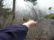 지난 일요일, 모 중학교 교장실을 찾았다. 교장이 대학 동기인데 이번에 교장 승진을 받아 축하 화분 하나를 사들고 방문한 것이다. 유리 테이블 위에 분재 하나를 올려놓으니 제법 축하 분위기가 난다. 기쁨을 나누면 두 배가 된다는데 교직에서의 교장 승진, 단 한 번뿐이고 본인뿐 아니라 가문의 영광이다. 교직 선배님은 조선시대 당상관 직위에 해당하는 벼슬이라고 가르쳐 주셨다. 교장실에는 이미 축하난 화분이 여러 개 들어와 있었다. 이제 가까이 있는 청계산으로 향한다. 이름하여 ‘교장 승진 축하 봄맞이 산행’. 계곡물이 녹아 힘차게 소리내어 흐르는 것을 보니 ‘그래, 이젠 봄이야!’를 느끼게 해 준다. 그러나 산길은 눈이 녹아 질퍽거린다. 그늘진 곳에는 잔설이 보인다. 능선길은 곳곳이 빙판이다. 미끄러져 엉덩방아를 찧는 사람도 보았다. 그러나 봄이 맞는가 보다. 경사진 곳을 조금만 올라도 숨은 헉헉 대고 이마에는 땀이 솟구친다. 아마도 겨우내 체력이 달리다고 별안간 운동량이 많아지니 그런가 보다. 국사봉(國思峰. 540m) 정상에 올랐다. 제법 많은 등산객들이 휴식을 즐기고 있다. 그 중 한사람은 손바닥 위에 땅콩 부스러기를 올려놓고 산새를 부르고 있다. 어느새 나타났는지 10여 마리의 산새가 손바닥 위에 앉아 땅콩을 잽새게 물고 달아난다. 그 등산객은 필자에게도 한 번 해보라고 땅콩 몇 알을 건네준다. 그리고 새들이 먹을 수 있게 잘게 부수라고 가르쳐 준다. 손바닥 위에 땅콩을 올려 놓고 팔을 쭉 뻗으니 산새들이 손바닥 위에 앉는다. 새발톱이 손바닥에 주는 촉감이 신선하기만 하다. 이런 느낌 처음이다. 그 등산객은 늘 산에 오면 이렇게 먹이를 주는 것 같았다. 땅콩을 꺼내는데 배낭에 땅콩 한 봉지가 보인다. 등산도 하면서 건강을 다지고 산새와 친구도 되고. 일석이조다. 필자는 동료교장에게도 땅콩을 건네면서 한 번 경험해 보라고 했다. 그리고 카메라를 꺼내 들었다. 신기한 장면을 기록으로 남기려는 것이다. 산새들이 동작이 얼마나 빠르고 또 경계를 하는지 10여 장 찍었는데 실패 장면이 더 많다. 산새들의 정확한 이름이 궁금하여 인터넷 정보 검색을 하여 보니 곤줄박이, 박새, 동고비 등이 사람과 친구되어 등산객을 반기고 있었다. 필자가 촬영한 것은 곤줄박이였던 것이다. ‘그래 이렇게 하면서 산새들과 가까워지는 것이지!’ 그렇다면 산새에게 모이를 주는 것은 좋은 일인가? 상식적으로 볼 때는 좋은 일이다. 특히나 먹이가 부족한 겨울철에는 더욱 그렇다. 산 전체가 눈이라도 쌓여 있다면 산새들은 먹이를 구할 수 없다. 사람의 보살핌이 필요한 것이다. 그러나 산새를 진정으로 사랑하는 사람들은 그들의 야생성 상실을 우려한다. 편하게 먹이를 구하는 것이 버릇이 되어 게을러진다는 것이다. 좋은 모이만 먹고 나쁜 모이는 거들떠보지도 않아 그들의 생존에 도움을 주지 않는다는 것이다. 필자는 무엇이 옳은 것인지 더 연구해 보아야겠다. 그러나 이것만은 분명하다. 자연과 친구되려고 산을 찾았으면 식물뿐 아니라 동물들과도 친구하는 재미가 쏠쏠하지 않을까 하는 생각이다. 땅만 보고 산행을 하는 것이 아니라 때론 새울음 소리를 들으며 나무를 살펴 산새집을 발견하고 그들이 벌레 등의 먹이를 잡아먹거나 짝짓기, 새끼치기 등의 모습을 보면서 자연을 사랑하는 마음을 길렀으면 하는 것이다. 필자가 어렸을 때는 나무에 있는 새집 발견이 그리 어려운 일이 아니었다. 그러나 요즘엔 새소리 듣기도 어렵고 새집을 발견하기란 더더욱 어렵다. 그만큼 자연환경이 삭막해져 가고 있다는 증거다. 새소리를 들으며 휘파람으로 그 소리를 흉내하면서 그들과 친구되는 즐거움을 다시금 즐겨보고 싶어서 하는 말이다.