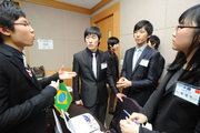 '제1회 대한민국 고등학생 모의 UN' 제2위원회 외교안보 부문에 참석한 학생들이 '전쟁방지'를 주제로 열띤 토론을 펼치고 있다. 이번 모의 UN은 '세계학생UN'이 주최했으며 22일 워크숍에 이어 23~25일 서울대 호암교수회관에서 열렸다. 전국 고교생 90명이 참가한 모의 UN은기존의틀에서 벗어난 대회 방식을 통해 학생 개개인의 창의력, 발표력, 잠재력 등을 평가하여 우수한 인재를 발굴하는데목적을 두고 있다. 제3위원회 경제 부문에서는 '자유 무역 협정'을 주제로위원회별 30개국의 국가가 모두 발언을한다. 각 대표단은 기조연설을 위한 발언자 명부를 통해 발언을 신청하고 순서에 따라 발표한다. 제2위원회 환경 부문에서 '기후 협약'이란 주제로 각 나라 대표단들이 자료를 공유하며 의견을 나누고 있다.