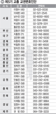 한국교총은 최근 정무원(57)·이용운(42) 변호사를 상임 법률고문에 위촉했다. 서울대 법대를 졸업한 정 변호사는 인천·서울·부산지방법원 판사를 지냈으며, 성균관대 법대를 졸업한 이 변호사는 서울북부지법·서울중앙지법 등에서 판사를 역임했다. 두 변호사는 1일부터 2011년 12월까지 교총 교권위원회 및 교권옹호기금운영위원회 위원으로 활동하면서 교권업무를 포함한 교총업무 전반에 대한 법률자문을 하게 된다. 교총은 또 노생만(53)·박충규(47)·김정완(44)·임철(57) 변호사를 권역별 법률고문으로 위촉했다. 노 변호사는 경인지역(서울·인천·경기·강원), 박 변호사는 충청지역(대전·충북·충남), 김 변호사는 호남지역(광주·전북·전남), 임 변호사는 영남지역(부산·대구·울산·경북·경남)에서 발생하는 교총 회원에 대한 교권침해 사건 등에 대한 무료 법률상담을 맡게 된다. 권역별 법률고문은 특히 중대한 교권침해 사건이 발생하면 교총과 함께 학교 등 현장에서 진상을 조사하고, 중재하는 역할도 수행할 예정이다. 서울대 법학과를 졸업한 노 변호사는 현재 사법연수원 교수로 재직하고 있다. 박 변호사는 연세대 법학과를 나왔으며 언론중재위원을 맡고 있다. 전남대 법학과를 졸업한 김 변호사는 광주지검 형사조정위원과 대한변협 아동법률지원변호사로 활동 중이다. 서울대 경제학과 출신의 임 변호사는 대구시각장애인협회 및 경북치과의사회 법률고문도 겸하고 있다. 교총은 “권역별 법률고문은 시·도교총에서 추천한 변호사 중 판·검사 경력 및 교총 활동·교육관련 활동 경력 등을 점수화 해 선정했다”며 “이들은 교권침해 사건 뿐 아니라 교총 회원들의 생활법률에 대한 전화나 방문상담에도 성실히 응해줄 것”이라고 밝혔다. 한편 교총은 상임·권역별 법률고문 외에 30명의 변호사로 제5기 교권변호인단을 구성했다. 교권변호인단은 해당 지역에서 교총 회원에 대한 무료법률상담을 제공하게 된다. 권역별 법률고문과 교권변호인단의 임기도 내년 12월까지이다. 교권변호인단 표 참조.