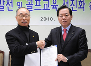 한국교총과 세계프로골프협회 아시안지회(회장 조근용)는 11일 서울 우면동 교총회관에서 ‘공교육 발전과 골프교육 선진화를 위한 협약서’ 체결식을 가졌다. 양 기관은 공교육 발전과 골프관련 교육의 선진화를 도모하고, 나아가 주니어골퍼를 양성함에 있어 교원의 전문성을 높여 양질의 교육이 제공되도록 할 목적으로 협약을 맺었다. 협약에 따라 양 기관은 공교육의 질적 제고와 교원의 사회적 지위 향상, 골프 관련 인재양성을 위한 프로그램 공동연구 개발 및 운영, 골프관련 청소년 대상 행사의 공동 개최, 체육교사의 골프티칭프로 자격관련 프로그램 운영 등에 공동 협력키로 했다.