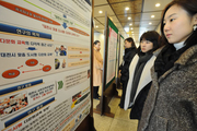 한국가정과교육학회(회장 이연숙)는 6일 한국교총 대강당에서 2009년 동계학술대회를 개최 하였다. 점심시간 1층 로비에 마련된 포스터들을 한국가정과교육학회 회원들이 관람하고 있다. 이수희 홍보이사가 '새로운 중학교 1학년 교과서의 교수-학습 전략 개관'이란 주제로 강연하고 있다.