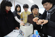 서울시동부교육청(교육장 김태서)은 4일부터 8일까지 동부과학교육센터에서 서울시내 중학교 과학교사 30명을 대상으로 '과학드라마를 활용한 과학탐구실험 직무연수'를 실시하고 있다. 6일 오동원 숙명여고 교사(가운데)가 '혈흔 찾기 강의 및 실험'시간에 헤마토크릿 원심분리기를 사용해 혈액성분 분리 실험을 준비하고 있다.