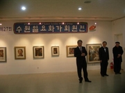 어제 동료 교장의 전화를 받고수원미술전시관(수원시 송죽동 소재)를 찾았다. 뭔지도 모르고 동료 교장의 문화에의 초대가 고마워 방문하니 공식 타이틀이 '제27회 수원일요화가회 회원전'이다. 맹기호 교장이 화가로서 활동하는 것은 익히 알고 있었지만 그 모임의 회장인 줄은 몰랐다. 20여 명의 회원 50여 작품이 전시되어 있었다. 수원교육장님을 비롯해 교직에 있는 분들은 낯이 익는다. 행정실에 근무하는 초교 여자 동기도 만났다. 정년퇴직하신 분들도 보인다. "올해가 27회니 이런 짓(?)을 27년간이나 했습니다." 회장이 한 인사말이다. 농담 속에 뼈가 있다. 비하하는 말로 들리지 않고 27년이라는 역사에 초점이 맞춰진다. 1983년에 창립되어 오늘에 이른 것이다. 아마추어들이 모여 역량을 쌓아 드디어 전문가들의 경지에 이른 것이다. 맹 회장(영덕중 교장)은 말한다. "작업을 통해 독자적인 개성을 발견하고 표출한다는 것은 참으로 어려운 작업"이라고. "우리들의 창작 활동은 궁극적으로 자신의 보다 나은 삶의 질을 위한 노력이지만 그 결과로 주변 사람들과 공감대를 형성하여 문화적 확산을 도모하는 것도 의미가 있는 일"이라고. 필자도 예술을 좋아한다. 음악회는 일부러 기회를 만들어 간다. 연극은 모처럼 만에 찾아온기회를 잡는다. 그러나 미술은 좀처럼 대하기가 쉽지 않다. 아마도 선입관 때문일까? 선입관을 깨뜨려야 접근할 수 있는데도 말이다. 제27회 수원일요화가회 회원전은 12월 28일까지 수원미술전시관 제1관에서 열린다. 연말 송년회 모임, 술로 흥청대기보다는 차분히 문화행사에 참여하는 것은 어떨까? 수원시민들의 행복한문화적 향유! 문화시민으로서 바람직한 일이다.
