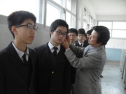 신종플루의 빠른 확산으로 일선 학교들에 대한 휴업령을 검토 중인 가운데, 26일 월요일 아침 서령고등학교 1학년 4반 교실에서 담임선생님께서 학생들을 대상으로 발열체크를 하고 있다. 서산은 현재 신종플루 확진자가 저번 주 37명에서 50명을 넘어서고 있다.