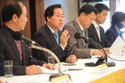 이원희 한국교총 회장은 20일 프레스센터 매화홀에서 '수능성적 공개 및 학생 학력평가제도'에 대한 기자회견을 가졌다. "수능성적 공개 및 학력 격차 해소를 위한 교육협의체 구성"과 함께 "동 협의체에서 수능성적 공개 범위.방법.절차 및 학력격차 해소방안 마련, 평준화의 문제점 보완 등을 논의할 것"을 촉구했다. 이번 기자회견 내용은 19일 개최된 전국 16개 시.도 교총회장협의회의 논의와 검토과정을 거쳐 확정.발표되었다. 좌로부터 라오철 한국교총 중등교사회장, 최한기 전국시.도교총회장협의회장, 이원희 한국교총회장, 박용조 한국교총 수석부회장, 황환택 한국교총 부회장, 유현정 한국교총 현장 대변인.