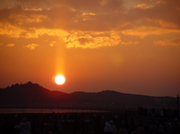 '왜목마을'이란 명칭의 유래(由來) 옛 문헌에는 '와목(臥木)'이라 기록되어 있다. 즉, 臥(누울 와) 자와 木(나무 목) 자의 결합인데 여기서 나무 목자는 명칭의 뜻과는 관계없이 쓰인 조사로 한글의 목자를 그냥 조사형식으로 쓰인 듯하다. 따라서 누워있는 사람의 목이라는 의미로 '와목'으로 불리다 '와' 자에 충청도 특유의 중성모음 'ㅣ'가 첨가되면서 '왜목'으로 불려지게 되었다. 정말 배를 타고 왜목마을을 바라다보면 낮은 산과 산 사이의 모양이 마치 누워있는 사람의 목처럼 생긴 듯도 하다. 왜목마을의 환상적인 일출장면. 왜목마을에서 바라본 서해바다의 전경 왜목마을에서 일출을 볼 수 있는 이유 왜목마을은 충남 당진군 석문면 교토리에 위치한 자그마한 어촌 마을로써, 조용하고 한적한 어촌이었는데, 서해안에서 일출을 볼 수 있는 곳으로 알려지면서 유명해진 곳이다. 이곳에서 일출을 볼 수 있는 이유는, 이곳의 지역적인 특징 때문인데, 우리나라 지도를 잘 살펴보면. 당진군은 서해에서 반도처럼 북쪽으로 툭 튀어 나와 있는데, 왜목마을이 바로 이 튀어나온 부분에 해당된다. 특히 해안이 동쪽으로 향해 튀어 나와있어 동해안과 같은 방향으로 일출을 볼 수 있는 것이다. 또한 이곳은 일몰을 동시에 감상할 수도 있다. 왜목마을 바닷가 전경-어느 펜션이나 바다가 한눈에 들어온다. 왜목마을의 깨끗하고 고운 백사장의 모습. 왜목마을에는 싱싱한 해산물들이 넘쳐난다. - 사진은 키조개의 모습이다. 왜목마을의 일출은 동해의 일출과는 차이를 보이는데 동해안은 장엄, 화려한 반면 서해의 일출은 소박하면서 서정적인 것이 특징이라고 할 수 있다. 한 순간 바다를 짙은 황토 빛으로 물들이며 떠오르는 아침해는 작으면서도 아름다워 서정적인 느낌을 준다. 좀 더 웅장한 일출을 보려면 마을 뒷산 격인 석문산(79.4m)에 올라가면 된다. 말 그대로 작은 동산처럼 생긴 석문산은 일출은 물론 일몰 포인트이기도 하다. 일몰은 이 곳에 올라가야만 감상이 가능하다. 왜목마을에는 이렇게 잘 조성된 펜션들이 즐비하다. - 숙박료는 2인 1실 기준으로 하루에 11만원선이다. 취재중에 잠시 바닷가 펜션에서 포즈를 취한 리포터. 펜션에서 1박하며 단란한 한 때는 보내고 있는 리포터의가족들. 인근 방조제도 연계관광으로 좋은 코스다. 무성한 갈대 숲 사이를 헤집고 낚싯대를 펼쳐 놓고 겨울 바람을 낚는 강태공들의 모습은 흔한 모습이며, 차례로 줄을 서서 어디론가 헤엄쳐 가는 오리들과 이름 모를 철새들, 방조제에는 풀어놓고 기르는 양떼 모습도 볼 수 있다. 왜목마을의 숙박시설들 왜목마을에는 아기자기한 펜션들이 아주 많다. 깨끗하고 아름다운 객실에서 푸른 바다가 펼쳐져 있는 탁트인 전망을 감상하는 것도 왜목마을만의 독특한 재미이다. 왜목마을 펜션촌으로 들어가는 입구. 펜션촌에는 각종 실외 운동기구들이 잘 구비되어 있다. ♠ 주변 관광지 : 대호방조제, 도비도 관광지, 서산 개심사 전망대에서 바라본 도비도 선착장의 모습. ♠ 오시는 길 ㅇ 태안, 서산에서 - 대산읍 ⇒ 대호방조제 ⇒ 왜목마을 (서산∼ 왜목마을 : 37㎞)