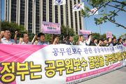 공무원보수 관련 공동대책위원회는 2일 정부종합청사 정문에서 공무원보수 관련 기자회견을 가졌다. 이날 참석자들은 정부는 공무원보수 결정을 공무원단체와 협의하고 대정부 단체협약을 성실히 이행 할 것을 촉구 했다.