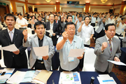 10일 충북 제천 청풍리조트에서 열린'2009 교총 조직 대표자 연수회'에서 녹색.나눔교육 실천을 위한 전국교육자대표 결의문을 채택하고 있다. 한나라당 정두언 교육위원이 '이명박 정부의 교육정책 방향과 교원단체의 역할'이란 주제로 강연이 끝난후에이원희 교총회장이 감사의 뜻을 전달 하고 있다. 이원희 교총회장이 '사회공헌 나눔운동 참여 서약서'를김만덕기념사업회 공동대표 고두심씨에게 전달하고 있다. 2부'교총의 역량 강화' 행사 중에서 건강 특강 시간에 참석 교원들이 지압을 통해 우의를 다지고 있다.