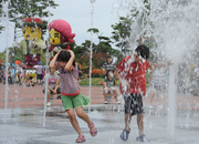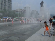 경상북도 울진군은 16일까지 24일간에 걸쳐 '2009 울진세계친환경농업 엑스포'를 친환경농업! 자연과 인간을 지키는 생명산업이란 주제로 울진왕피천 엑스포공원에서 개최 하고 있다. 1일 엑스포주 광장에 설치된 분수대에서 어린이들이 더위를 식히며 즐거워 하고 있다. 친환경 농업관을 둘러보고 있는 관람객들.