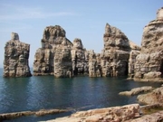 + 서해 최북단의 매력적인 섬 그러니까 백령도 용기포 선착장에 도착하기까지 딱 12시간이 걸렸나 봅니다. 자정에 출발한 서울발 심야버스는 새벽 4시 30분경 강남고속터미널에 도착했고, 한 시간 정도 터미널 근처에서 대기했다가 전철을 타고 인천 연안여객선터미널에 도착했습니다. 연안여객선터미널에서는 정각 8시에 출발하는 여객선을 타고 4시간 조금 넘게 달린 끝에 백령도에 도착했습니다. 북한의 핵실험과 미사일 실험, 그리고 남한의 PSI 전면 참여, 개성공단 문제 등으로 어느 때보다도 남북 간 긴장이 팽팽한 때 서해 5도 중 한 곳인 백령도를 찾아간 것입니다. 예상외로 백령도는 침착하고 조용했습니다. 지리적으로 백령도는 북한과 훨씬 가깝고 바다 건너에 북한 황해도가 한눈에 들어오기에 유사시에 어떤 상황이 발발할지 모릅니다. 그럼에도 불구하고 주민들은 잔잔한 바다만큼 흔들림 없이 생업에 종사하고 있었습니다. 진촌리에서 만난 어떤 주민은 오히려 그런 긴장감이 있기에 훨씬 여유로운 곳이라고까지 합니다. 하지만 주민들과 달리 군인들을 보면서 미묘한 전운을 감지할 수 있었습니다. 휴가 나온 군인들은 군복을 입은 채 대기 상태로 언제든지 부대로 복귀할 준비를 하고 있었고, 점점 더 많은 병력이 섬으로 들어오고 있다고 했습니다. 북방한계선 인근에서 조업하던 중국 어선들은 이런 분위기를 아는지 한꺼번에 사라져 버렸고, 북한은 군사력을 과시라도 하듯이 대거 군사력을 서해안 쪽으로 집결시켜 두었다고 했습니다. 사실 백령도를 포함한 우리 땅 서해 5도는 북한으로 봐서는 목에 가시와 같은 곳입니다. 서해 5도로 인해 북방한계선(NLL)이 생겼고, 그 북방한계선으로 인해 개성이나 해주 쪽에서 서해로 진출하려면 황해도 해안선을 따라 백령도와 가까운 장산곶까지 거슬러 올라가야 하는 상황이 되었죠. 우리로서는 서해 5도를 확보함으로써 인천 앞바다를 통해 곧바로 서해로 진출할 수 있습니다. 이런 군사적 중요성으로 인해 백령도에는 해병대 6여단을 중심으로 공군, 해군 등 국군이 배치되어 서해 최북단 우리 영토를 지키고 있습니다. 백령도는 행정구역상 인천광역시 옹진군 백령면에 속합니다. 전체 인구는 4000여 명, 남한에서 여덟 번째로 큰 섬입니다. 옹진군은 북도면, 연평면, 대청면, 덕적면, 자월면, 영흥면 등 서해에 떠 있는 섬을 껴안고 있습니다. 백령도를 돌아다니다 보면 곳곳에 냉면집이 눈에 띕니다. 황해도식 냉면집이 대부분이라는데, 어느 식당에서 먹어본 냉면은 메밀로 만들어 시원했습니다. 짠지떡도 유명한데 이것은 백령도 사람들이 짠지라고 부르는 김치를 잘게 썰고 굴이나 조개 등으로 소를 만들어 먹는 것으로 생김새는 만두와 비슷합니다. 백령도 까나리액젓의 명성도 알아줍니다. 곳곳에서 숙성용 저장용기를 볼 수 있고 소금을 만드는 염전도 한 곳 있습니다. 그밖에 전복, 해삼, 우럭 등 신선한 해산물이 풍부한데 여행 기간 중 사자바위를 앞에 둔 고봉포구에서 본 팔뚝만한 숭어 떼가 기억에 남습니다. [PAGE BREAK] + 천연기념물로 지정된 사곶해안, 콩돌해안, 점박이물범 군사적, 지리적인 특수성으로 인해 백령도는 그동안 자연 모습 그대로 유지할 수 있었습니다. 그런 까닭으로 몇 점이 천연기념물로 지정되어 보호받고 있습니다. 천연기념물 제391호로 지정된 사곶해안은 규암 가루가 층층이 쌓이고 그 모래 사이에 뻘이 뒤섞여 형성되었습니다. 그 단단하기가 비행기 이착륙이 가능할 정도라고 합니다. 실제로 이곳은 1970년대까지 비행기 이착륙 용도로 이용되었다는데 이탈리아 나폴리 해안과 함께 전 세계에 두 곳밖에 없는 천연비행장이라고 합니다. 4㎞에 이르는 긴 백사장은 해송이나 해당화와 함께 어울려 세상에서 가장 안전한 해수욕장으로 각광받고 있습니다. 천연기념물 제392호로 지정된 콩돌해안은 말 그대로 콩알만한 돌들이 지천으로 깔려 있습니다. 제 색깔을 잃은 녀석들이 물을 만나면 제 색깔을 드러내는데 그 화려함이 끝내 줍니다. 일반적인 모래사장을 밟는 느낌이나 굵은 몽돌해변을 밟는 느낌과는 다른 이색적인 즐거움을 안겨줍니다. 이 해안은 백령도의 모암인 규암이 해안의 파식작용에 의해 마모를 거듭해 만들어졌다고 합니다. 똑같은 콩돌이 물을 만나면 색깔을 드러내고 그렇지 않은 곳은 제 색깔을 잃고 맙니다. 남북의 상황도 비슷하지 않을까요? 결국 같은 색깔, 같은 모양인데 단지 드러나는 색깔이 다를 뿐이지 않을까요? 백령도의 중심지는 진촌리입니다. 고려시대 이후로 진(鎭)이 설치되었다고 해서 붙여진 이름입니다. 진촌리 하늬바다에는 천연기념물 제393호로 지정된 감람암 포획 현무암 분포지가 있습니다. 이곳 현무암을 자세히 보면 그 속에 황록색을 띤 감람암 암편들이 보이는데 이것은 용암 분출시 지하 맨틀 층에서 떨어져 나온 것이라고 합니다. 그래서 땅속 깊은 암석을 연구하는 데 귀중한 자료가 된다는데요, 지금은 사람들에 의해 많이 채취되어 곳곳에서 감람암이 빠져나간 흔적만 남아 있는 듯합니다. 국가지정 천연기념물이 이렇게 방치되다시피 하고 있으니 답답한 노릇입니다. 하늬